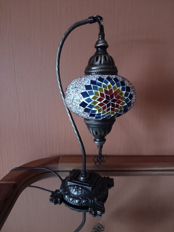 Strahlend leuchtet diese Mosaiklampe in kunterbunt und bietet orientalischen Flair.